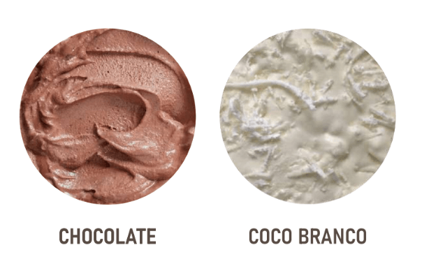 . Sabor Coco Branco com textura macia e flocos de coco (fruta in natura).